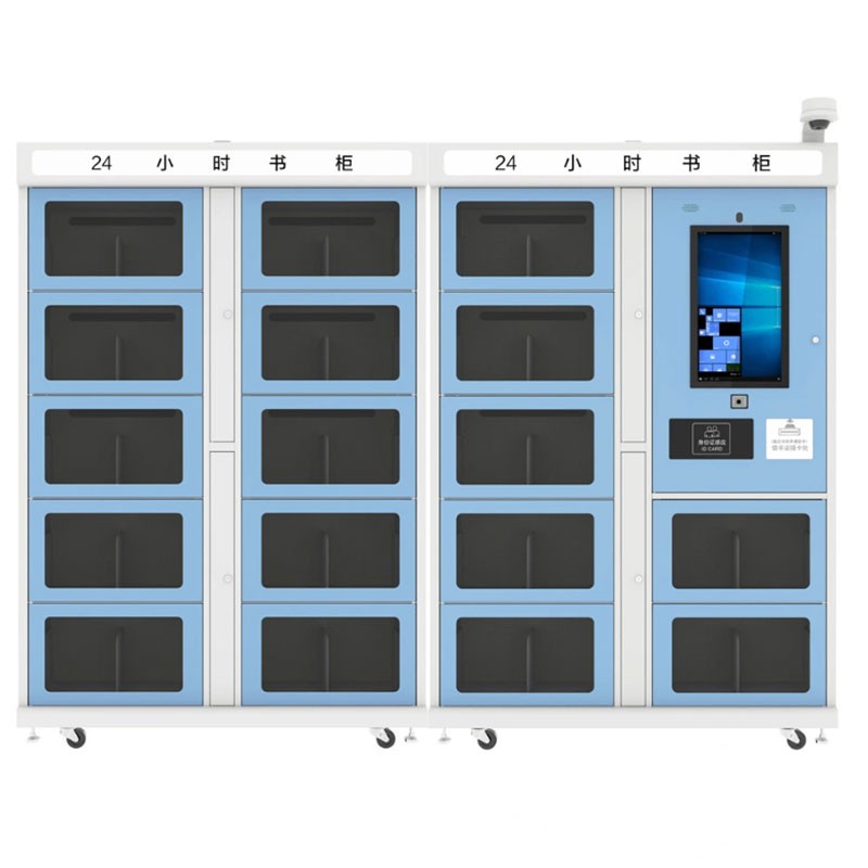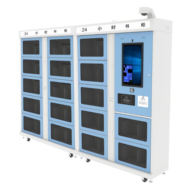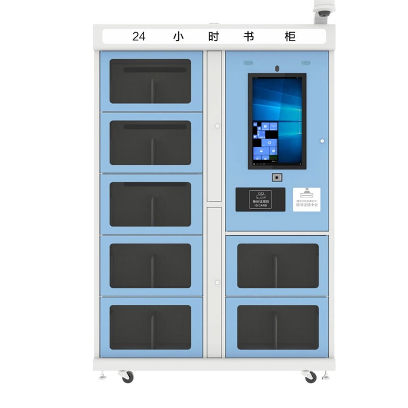 Book cabinets can be placed independently, occupying a small area, large capacity, low power consumption, and easy to move and arrange. In addition, the bookcase adopts a closed bookcase, and books can be borrowed by scanning codes, reader cards/ID cards, etc. The cabinet is equipped with electronically controlled locks, which does not require personnel management, and can realize self-service 24-hour borrowing and returning books.