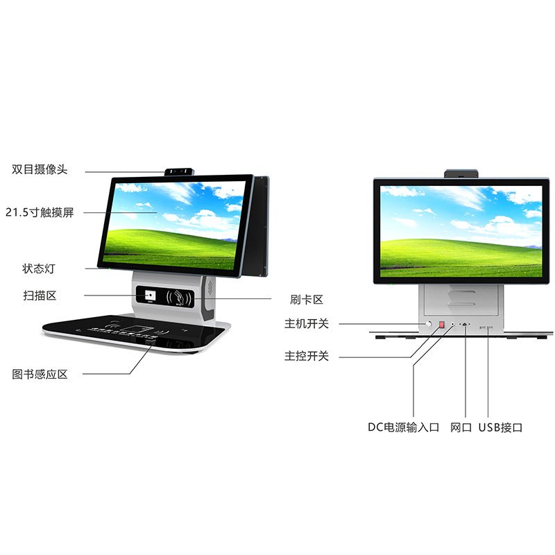 RFID smart library dual screen library staff work management station book sensing intelligent touch terminal all-in-one machine
